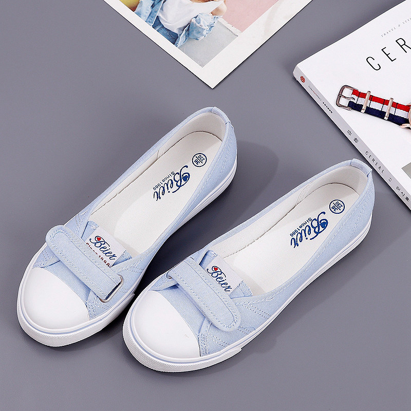 Mùa xuân và mùa hè cạn miệng giày vải giày phụ nữ một bàn đạp lười biếng thường Hàn Quốc hoang dã giày trắng singles giày y tá giày